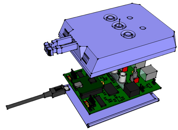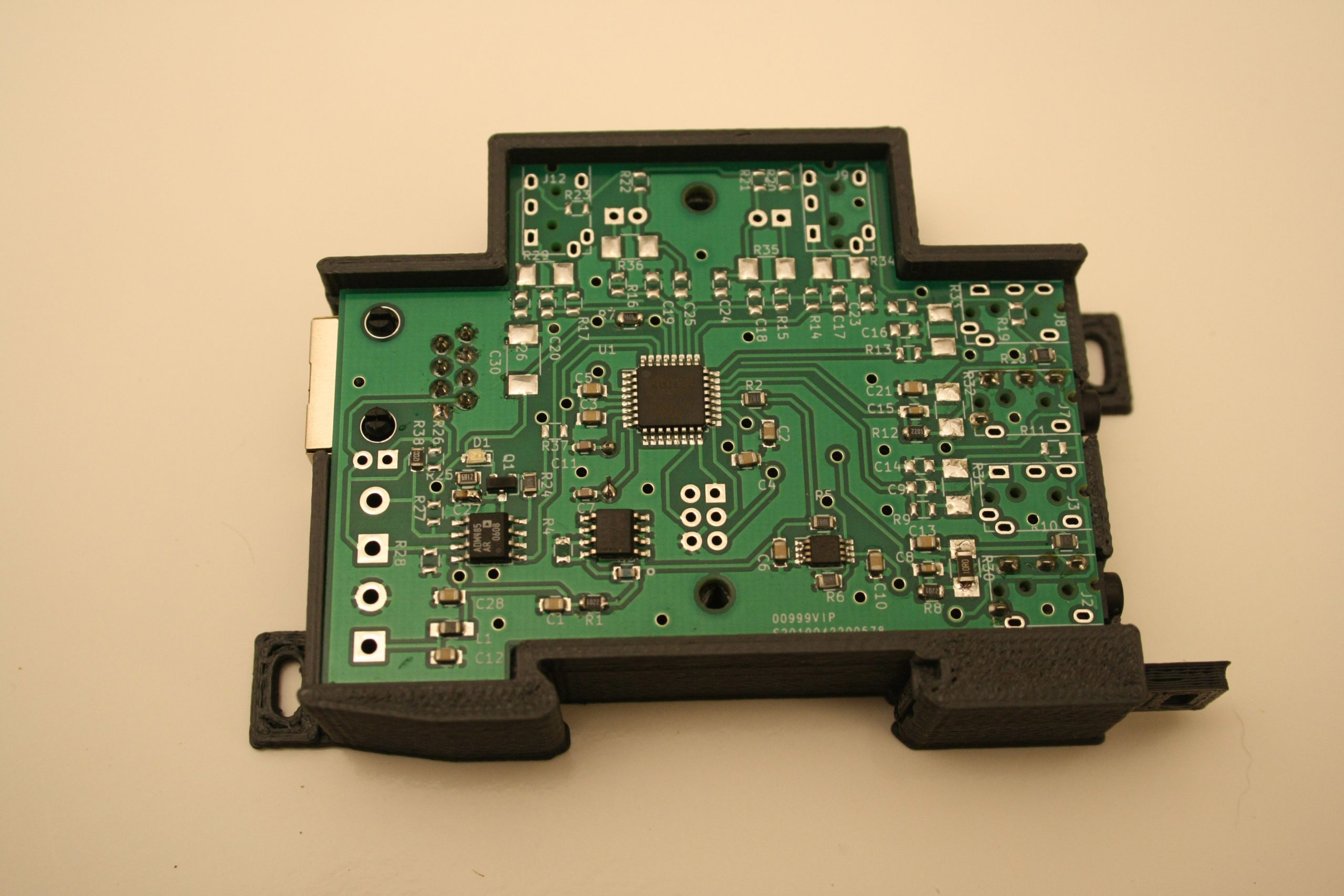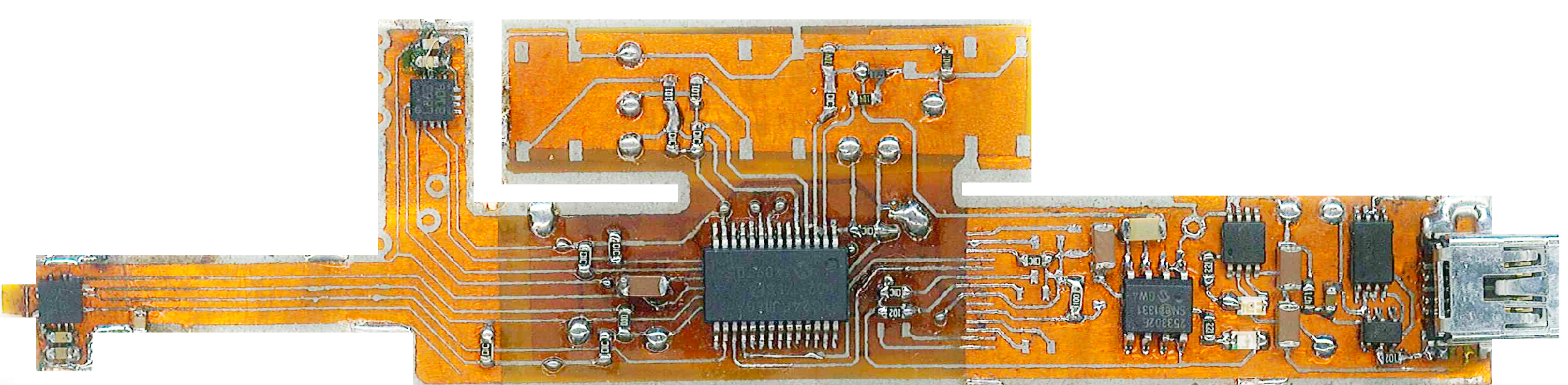 Analyseur de champs magnétiques : ce montage monté sur circuit flexible permet l’intégration dans un boitier sur plusieurs plans.